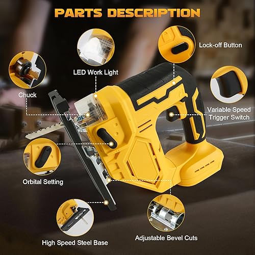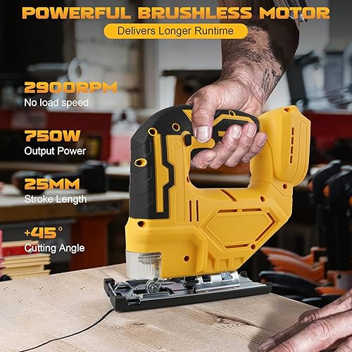 Akku-Stichsäge, 750W Kompatibel mit M-akita 18V (21V MAX)Lithium-Akku mit Arretierung und stufenlosem Geschwindigkeitsschalter, 80 mm Schnitttiefe, inkl. 6 Sägeblatt, LED-Licht, Hin- und Herhub 26 mm
