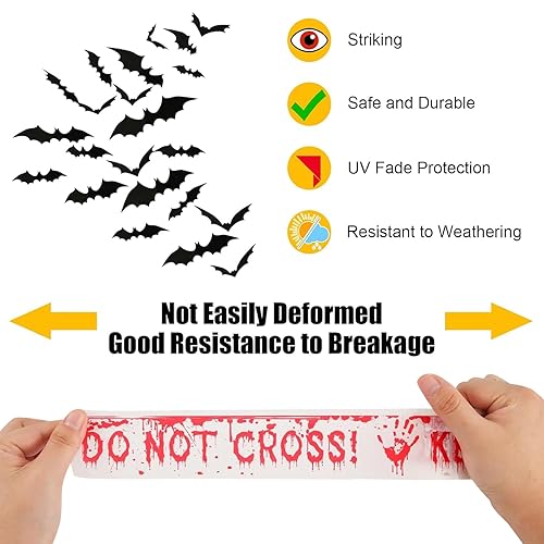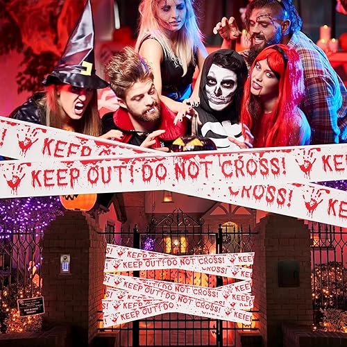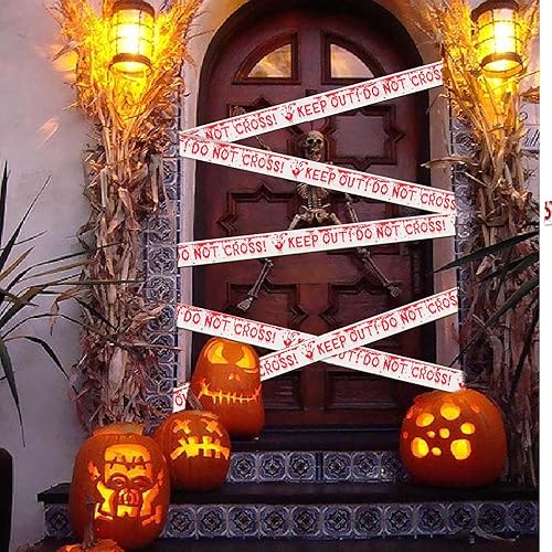 KHDULQ 4.8 * 25M Absperrband,Rot Weiß Flatterband Deko Vorsicht Glas Klebeband Warnband Warnings Tape Horror Gruselige Caution Signalband zur Abgrenzung von Sicherheitsbereichen