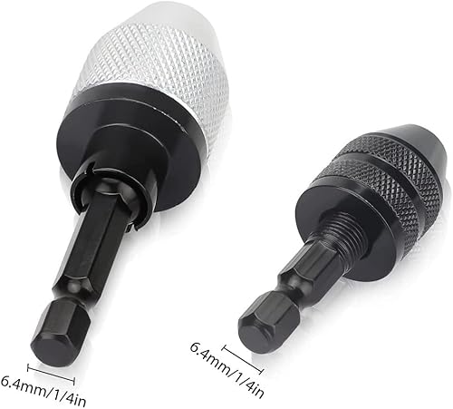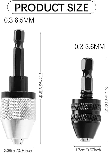 Fixinus 2 Stück Keyless Bohrfutter – 1/4' Sechskantschaft Bohrer Adapter, Schnellwechsel Konverter Verlängerung Schraubendreher Bohrer Adapter für Schlagbohrmaschine (0.3-6.5mm, 0.3-3.6mm)