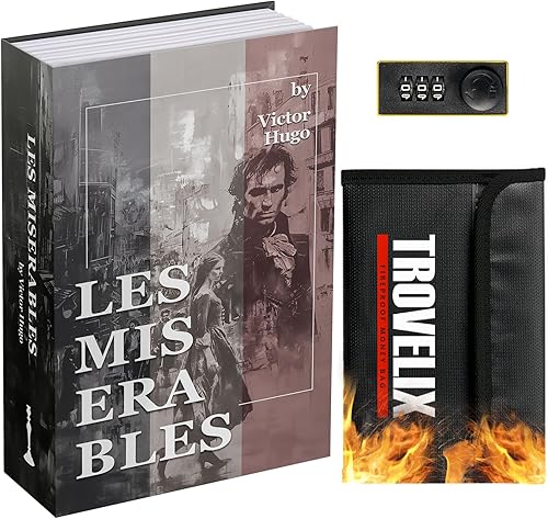 Sekam Buchtresor mit Zahlenschloss, Versteckter Safe (24 x 15 x 5,5 cm) mit feuerfester Tasche, Secret Diversion Safe, Hohlbuchbox Versteckte Aufbewahrung, Geldtresor Box für Bargeld (Les Miserables)