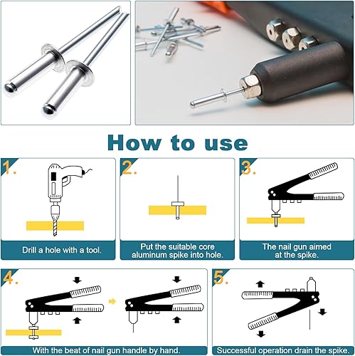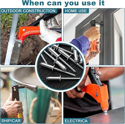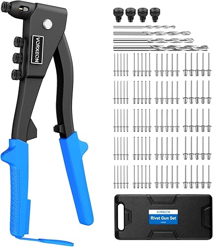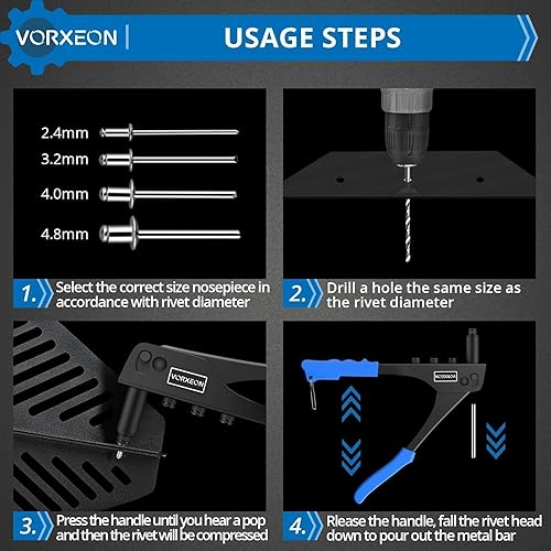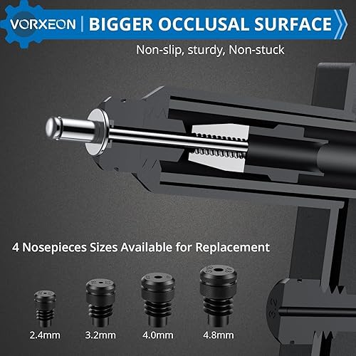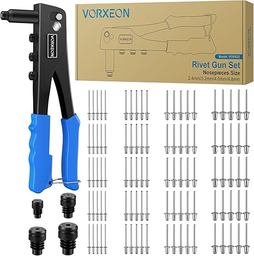 VORXEON Nietzange Nietenzange Set Mit 100pcs Nieten 2,4 mm 3,2 mm 4,0 mm 4,8 mm 4pcs Düsengrößen Blindnietzange Nietwerkzeug Popnietenzange Für Möbel Automobil Boot Instrument Heimwerker