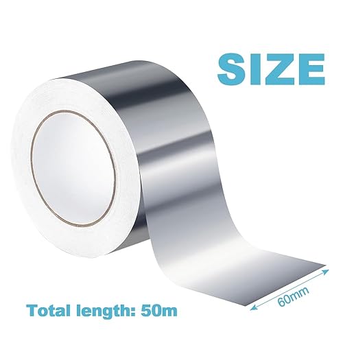 yotutun Aluminium Klebeband 60mm x 50m, 1 Rolle Wasserdichtes Alu Klebeband Hitzebeständig Dampfsperre Selbstklebendes Aluminiumfolienband Aluband zum Reparieren, Versiegeln, Isolierung