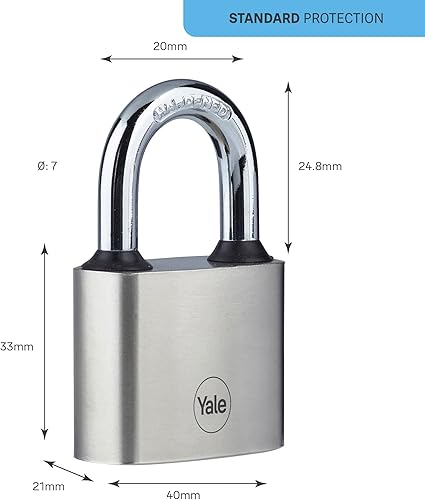 Yale - Y112/40/138/1 Eisenscheibenvorhängeschloss 40 mm - vernickelt -Langer Bügel aus gehärtetem Stahl - Extreme Korrosionsbeständigkeit für den Außeneinsatz