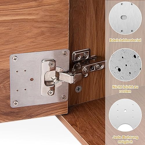 Scharniere Reparaturplatte, 12 Stück Edelstahl Küchenscharnier Reparaturplatten mit 72 Stück Schrauben, 9 x 9 cm Küchen Scharniere Für Schranktüren, Schrank Scharnier Reparaturset