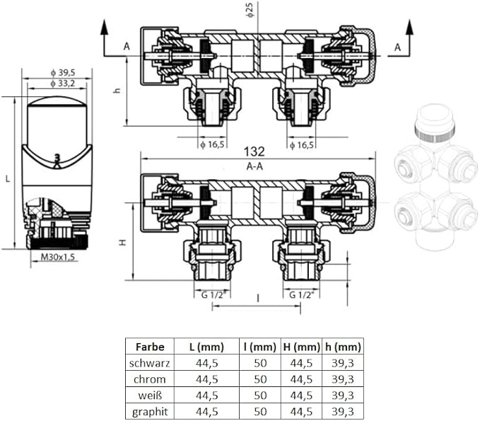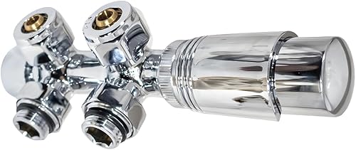 Multiblock Set für Heizkörpe - Hahnblock Ventil Anschlussarmatur inkl. Thermotstat - Weiß