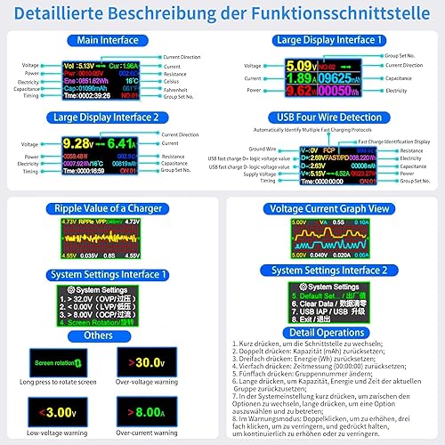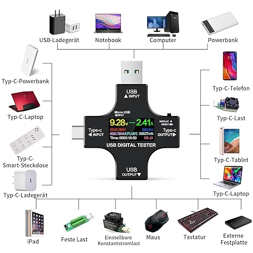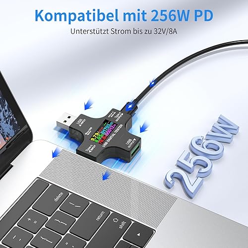 YEREADW USB Tester Messgerät 2-in-1 Typ C Strommessgerät LCD Multimeter Digital Strommesser Power Meter, Spannung Voltmeter, Strom, Leistungskapazitä Detektor (USB Tester)