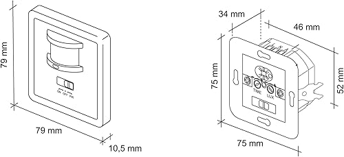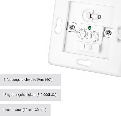 SEBSON Bewegungsmelder Innen Unterputz, LED geeignet, Wand Montage, IR Sensor programmierbar, UP Dosen 60mm, Hohlraumdose 68mm, Reichweite 9m/160°, 3-Draht