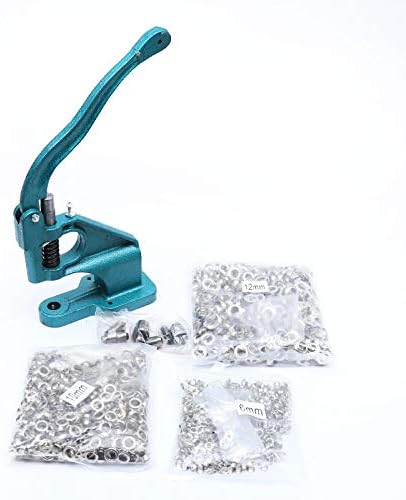 KATSU Ösenpresse, Handpresse Ösenmaschine Ösenstanze Nietenpresse Druckknopfpresse Ösenzangen mit 3 Matrizen (6mm/10mm/12mm) und 1500 Stück silberne Ösen für Leder Handwerk Vorhänge