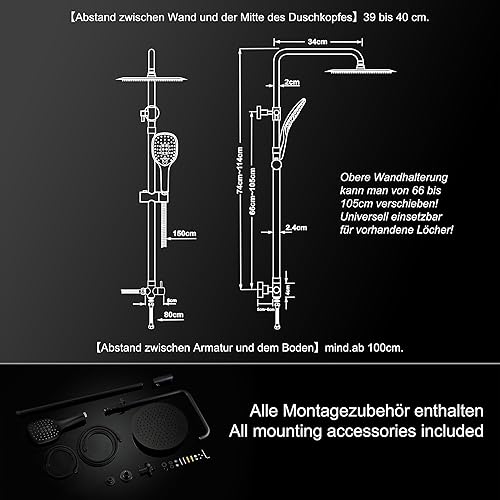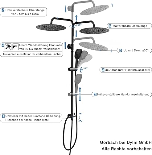 Görbach Edelstahl Duschsystem Duschset ohne Armatur Regendusche Überkopfbrauseset (SJ-E3030CP), Chrom