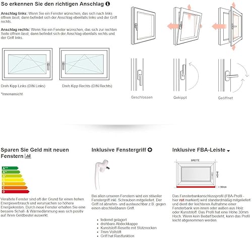 Kellerfenster - Kunststoff - Fenster - weiß - BxH: 100 x 60 cm - 1000 x 600 mm - DIN Links - 3 fach Verglasung - 60 mm Profil