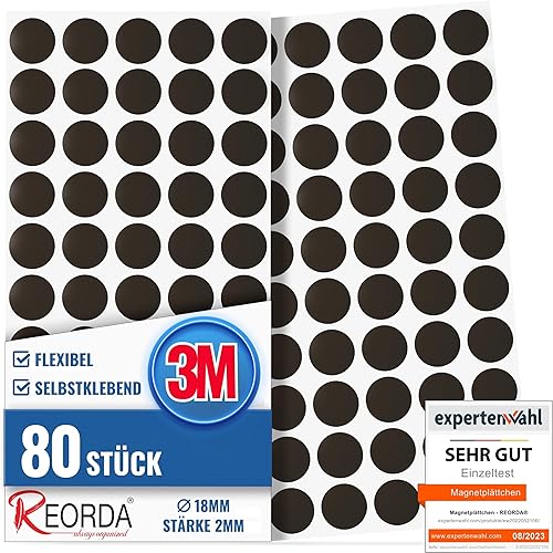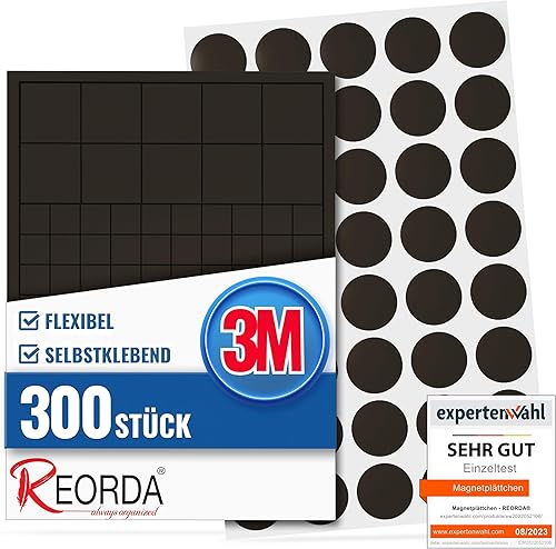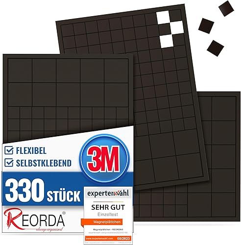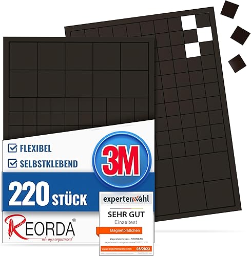Reorda® Magnetplättchen selbstklebend (220 Stück) | Starker 3M-Kleber ermöglicht ausgezeichnete Klebekraft | Vielseitige Flache Magnete zum basteln & schneiden | Ideal nutzbar für Schule & Büro