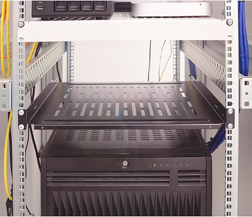 LogiLink SF1C45B - 19' Einschubfach (1 HE) für Stand-, Serverschränke mit Mind. 450mm Tiefe, max. 10kg Tragkraft, Schwarz