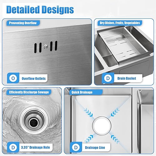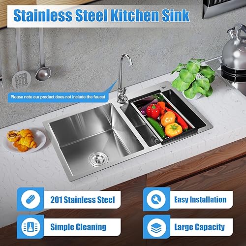 2 Becken KüChenspüLe EinbauspüLe SpüLbecken Eckig SpüLe Mit AbtropffläChe Set Edelstahl EdelstahlspüLe Doppel Ablage KüChenspüLen Doppelbecken Waschbecken EinbauspüL DoppelspüLe Drainer