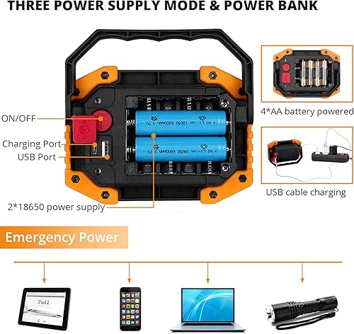 KAMEUN LED Baustrahler Akku 2 Stück, Wiederaufladbare Strahler mit Akku (18650ma*2) 30W 2000LM, LED Arbeitsleuchte USB Tragbar für Garage Camping Angeln Notfall Baustellen,3 Lichtmodi (GELB)