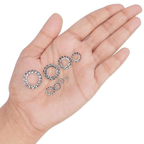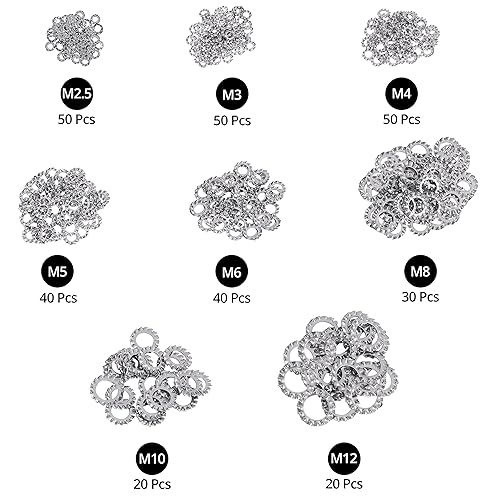 Belle Vous Außenzahn Sicherungsscheiben Sortiment (300 Stk) - Zahnscheiben Größensortiment M2.5, M3, M4, M5, M6, M8, M10, M12-304-Teiliges Edelstahl Zahnscheiben Sortiment für Schraubenbefestigung