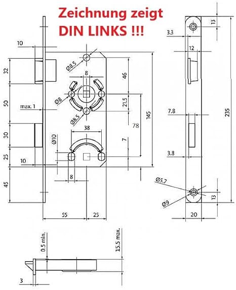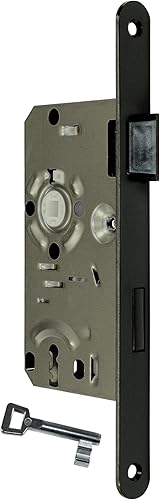 SN-TEC Standard Zimmertürschloss/Türschloss mit Buntbart, mit schwarzer Stulp, 55/72/8, Stulp: 20 x 235mm abgerundet schwarz DIN Rechts (BB BUNTBART DIN Rechts)