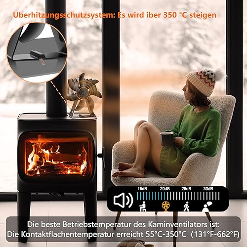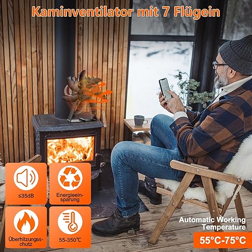 Fwiull Kaminventilator ohne Strom, 7 Blättern Ofenventilator Ventilator Für Kaminofen ohne Wärmebetriebener Stove Fan Leiser mit Ofenventilator Kaminventilator für Holzöfen/Holzbrenner oder Kamin