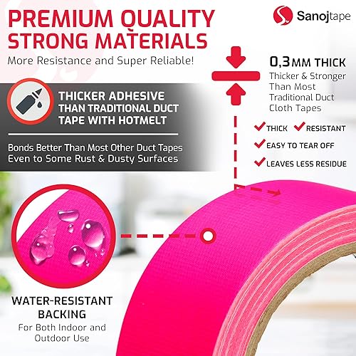 Sanojtape Neon-Fluor-Gewebeband 50mm x 10m Fluoreszierendes Rosa Dekoband