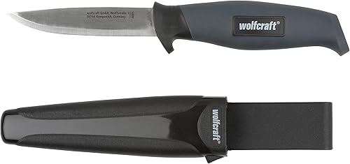 wolfcraft Outdoormesser mit gerader Klinge und Köcher I 4085000 I Messer für Hobby, Handwerk und Camping