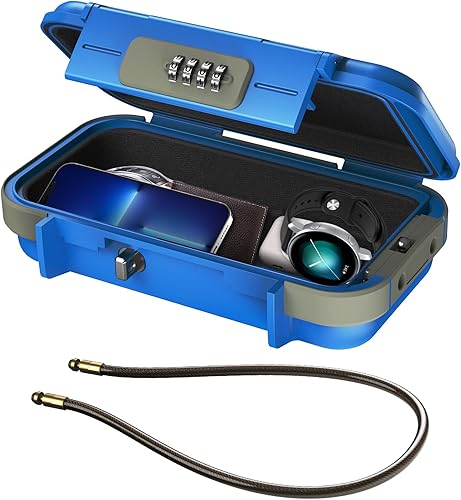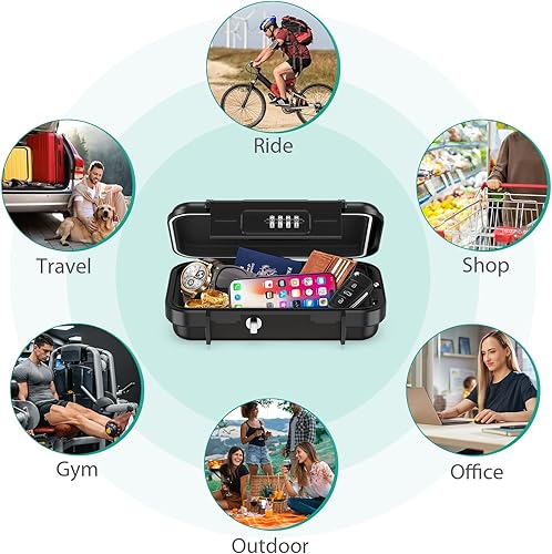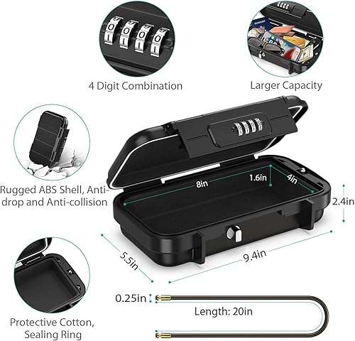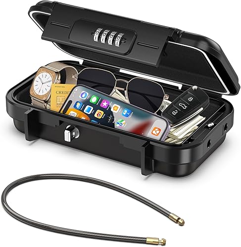 ORIA Tragbarer Tresor mit Zahlencode, Sicherheitsbox Outdoor Sicherheitssafe, mit Drahtseil abnehmbarem, Wasserdicht Schlüsselsafe mit Kombination, für Reisen, Strand, Camping, Büro - Schwarz
