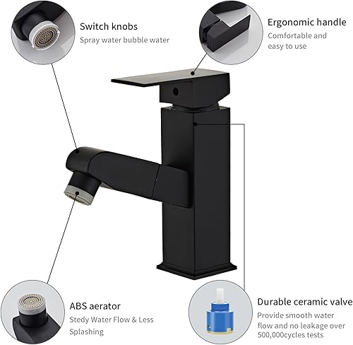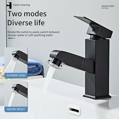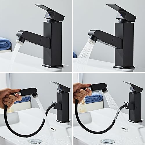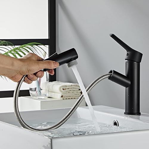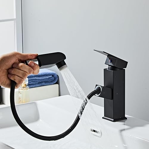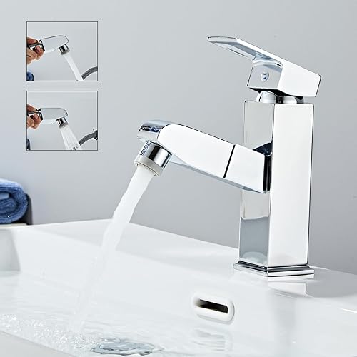 Sumeber Wasserhahn Bad Armatur mit herausziehbarer Waschtischarmatur mit 2 Strahlarten Mischbatterie Geeignet für Aufsatzwaschbecken Warm Kalt Mischbatterie Waschbeckenarmatur für Badezimmer