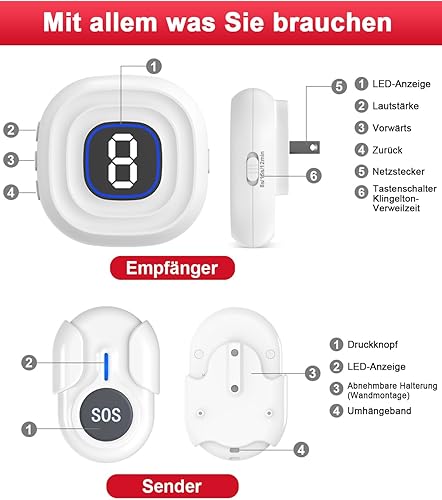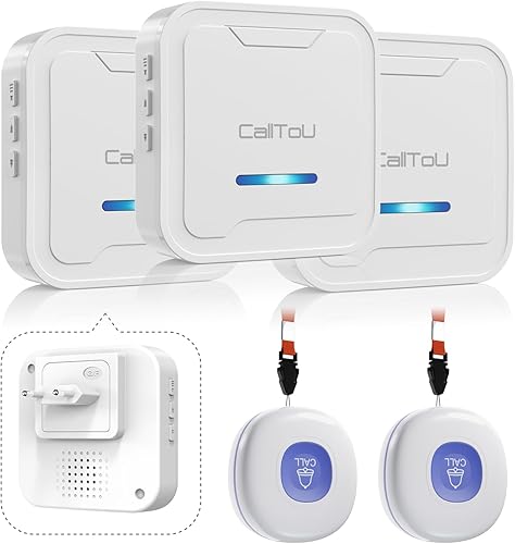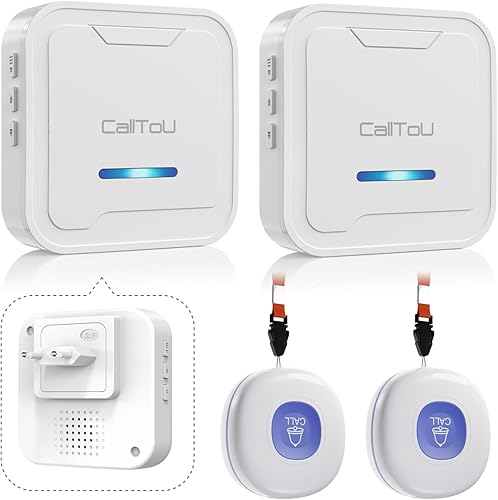 CalltoU Notrufknopf für Senioren Notruf Kabellos Notfallknopf Hausnotruf für Senioren 500 Fuß Im Offenen Bereich für Pflegebedürftige Geduldig Älterer (2 Sender 2 Empfänger)