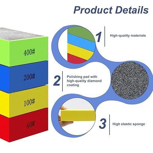 4 Stück Diamant-Handpolierpads,Diamant-Schleifblock-Set,Glas Schleifen Pads Schleifschwämme,Schleifblöcke Polierpads Glas-Schleifpads Polierpads für Granit, Marmor, Keramik 60#100# 200# 400#