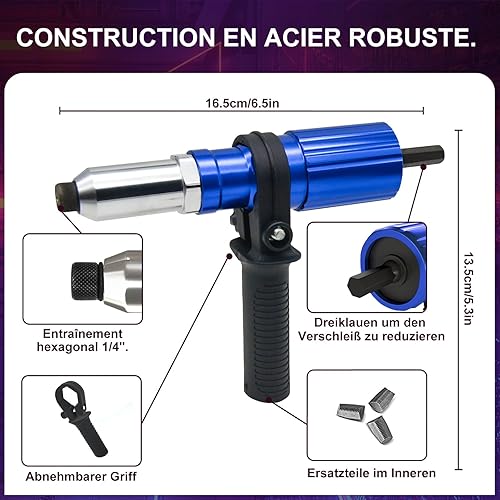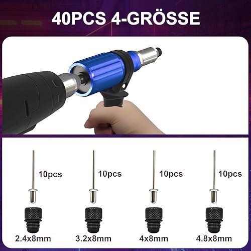 GUPTOMES Nietenzangen-Blindnietadapter – Nietaufsatz für Akkuschrauber und Bohrmaschinen mit 2,4 mm, 3,2 mm, 4 mm, 4,8 mm Nasenstücke