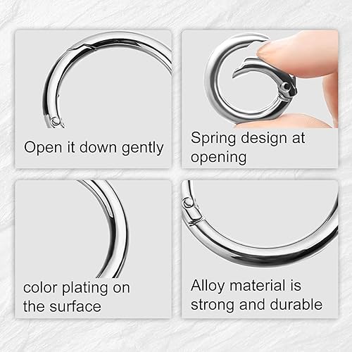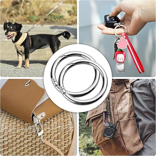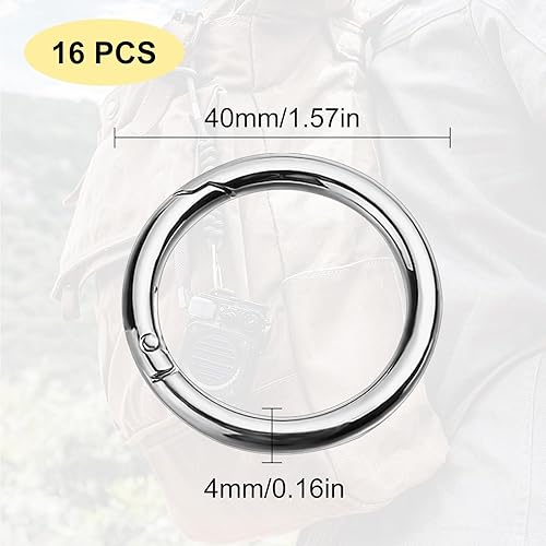 16 Stück Runde Karabinerhaken, 40mm Zinklegierung Rund Karabiner Ring Groß Federspaltringe Schlüsselring O-Ring für Schlüsselanhänger Tasche Geldbörse DIY Handwerk, Silber