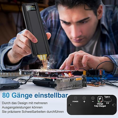 Akku Punktschweißgerät, Punktschweißgerät mit automatischen und manuellen Modi, 80 einstellbaren Geschwindigkeiten für DIY Akkupacks