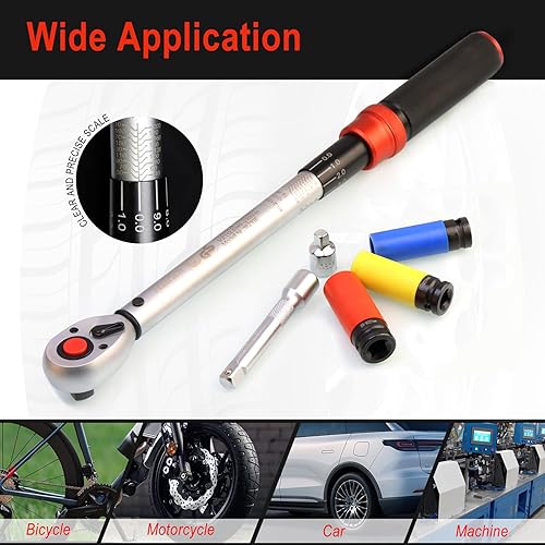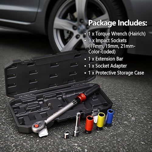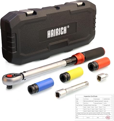 Hairich Drehmomentschlüssel 1/2 Zoll, 40-210 Nm für Auto & Motorrad, TÜV Süd GS, Drehmomentschlüssel 6tlg. Set inkl. 125mm Verlängerungsstange, 1/2'-3/8' Adapter, 3 Stecknüsse für Reifenwechsel