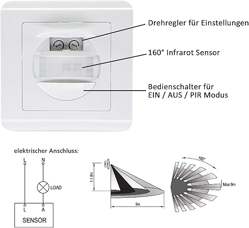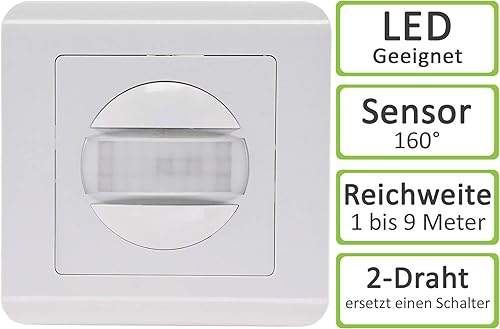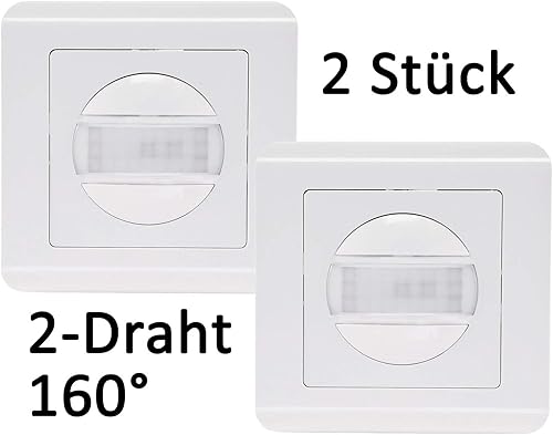 Bewegungsmelder 160° Unterputz Einbaubewegungsmelder 9m Reichweite 2-Draht Ersatz für Lichtschalter Einbaubewegungsmelder 2 Stück Weiß