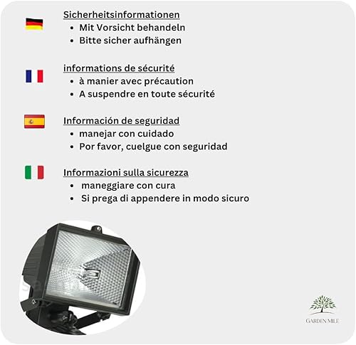 Garden Mile® Halogen-Flutlicht mit PIR-Bewegungssensor, 400 W, wetterfest, automatisches Sicherheitslicht, verstellbarer Schwenkkopf-Detektor mit 180-Grad-Winkel (1)