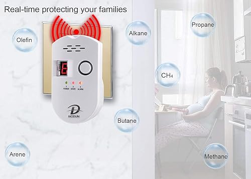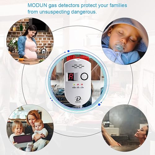 Gasmelder, LPG/Erdgas/Kohlengas Lecksucher, einsteckbarer Sensor Gasmonitor mit akustischem Alarm und LED Digitalanzeige, Methan Propan Butan Alarm für brennbare Gase in der Küche Krankenhausgarage