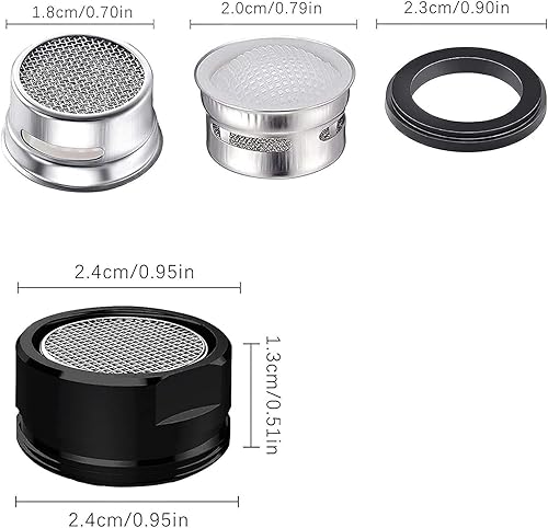 Strahlregler Wasserhahn Schwarz F22, 4 Stück Perlatoren für Wasserhähne Schwarz mit 4 Stück Wasserhahn Sieb,Wassersparer für Wasserhahn,Edelstahl Wasserhahn Aufsatz Schwarz (F22, Schwarz 1)