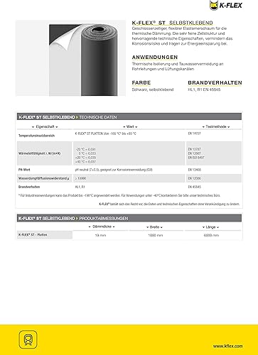 K-Flex ST Platte Dämmmatten selbstklebend + Zubehör, in den Dämmdicken 10mm-32mm, integrierter Schimmel-und Bakterienschutz -Camperisolierung, Wohnwagendämmung, Kautschuk - ganze Kartons (19mm/6m²)