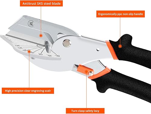 FLORA GUARD Gehrungsschere,Winkelschere für präzisen Schnitt an Kunststoff Gummi Holz,verstellbar von 45 bis 135 Grad, mit 10 Ersatzklingen