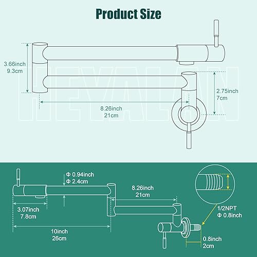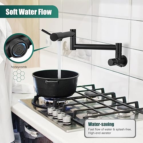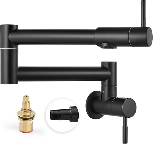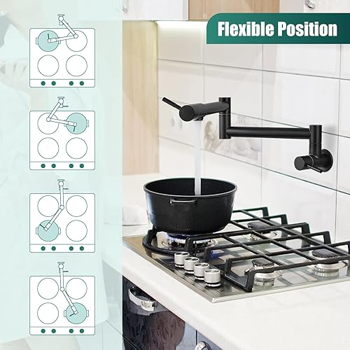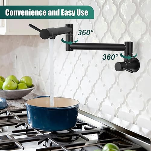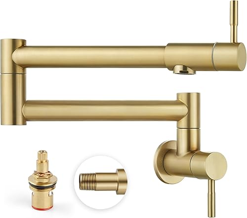 Heyalan Topflappen, gebürstetes Nickel, wandmontiert, zusammenklappbar, dehnbar, Küche, Restaurant, Spüle, Wasserhahn mit Doppelgelenk, Schwenkarm, Einzelloch, zwei Griffe, kommerzieller NPT-Edelstahl