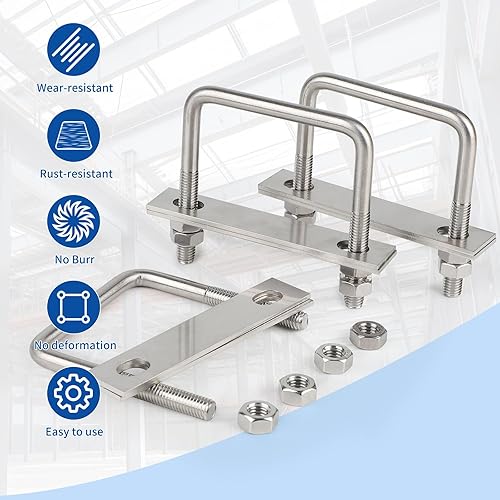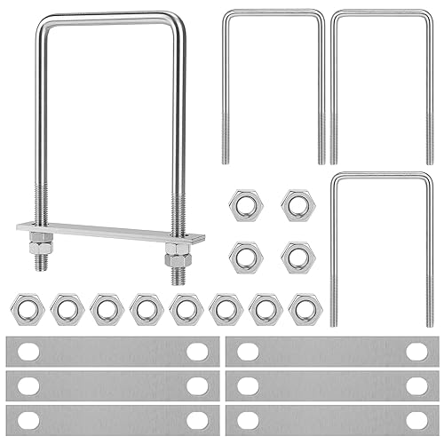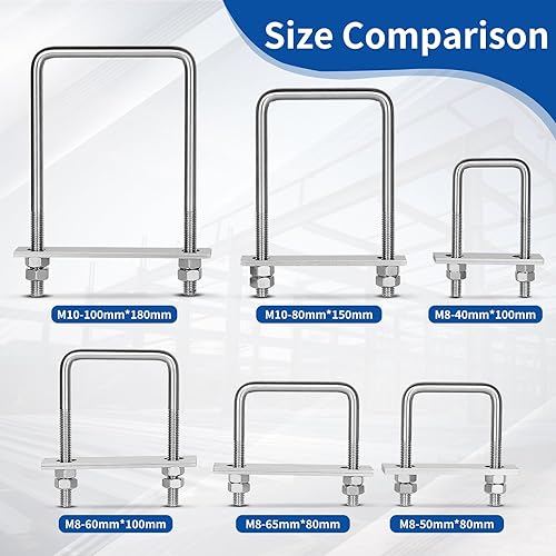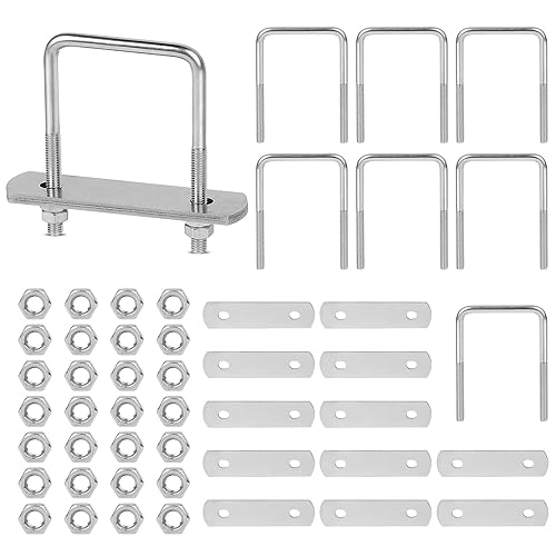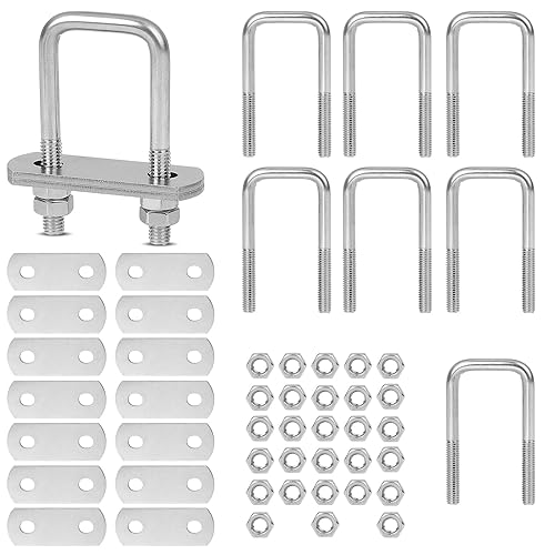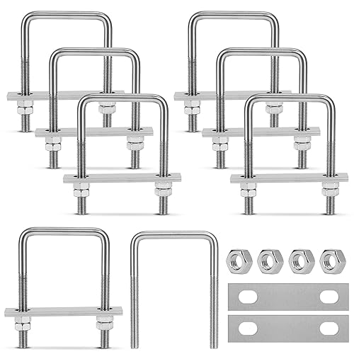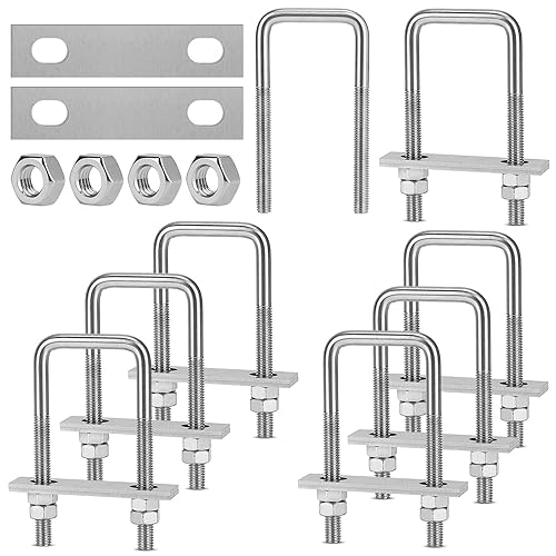 EFUTURETIME 8 x U Schrauben M8 Bolzen 60mm x 100mm mit 16 Gegenplatte, Bügelbolzen Bügelschelle Edelstahl für Zaunpfosten, Rohr Befestigung, Auto Abschleppen