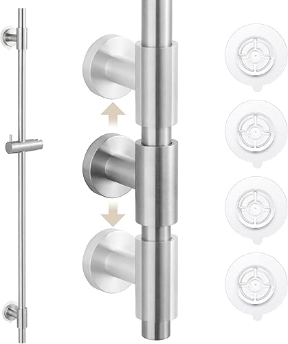 KES Duschstange ohne Bohren Brausestange Edelstahl 18/8 Duschstange mit Duschkopfhalterung Duschkopf Halterung Wandstange Kleben Poliert, F209S100DF-PS