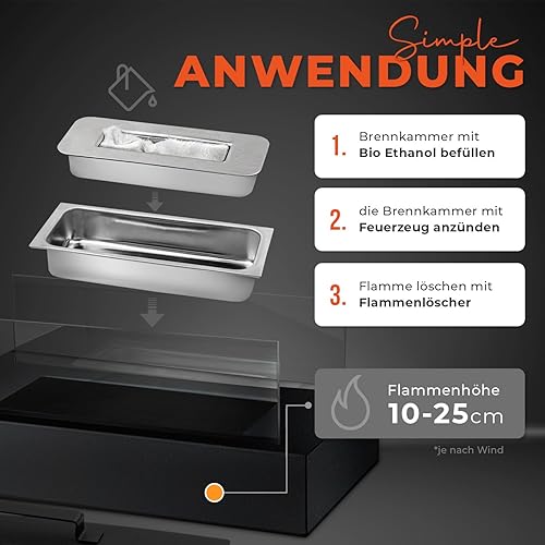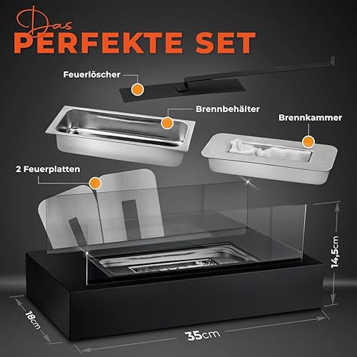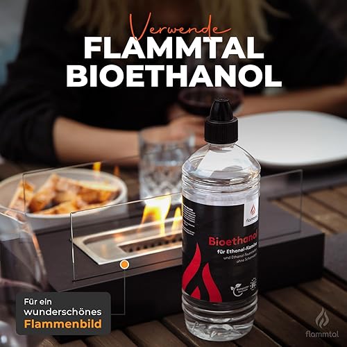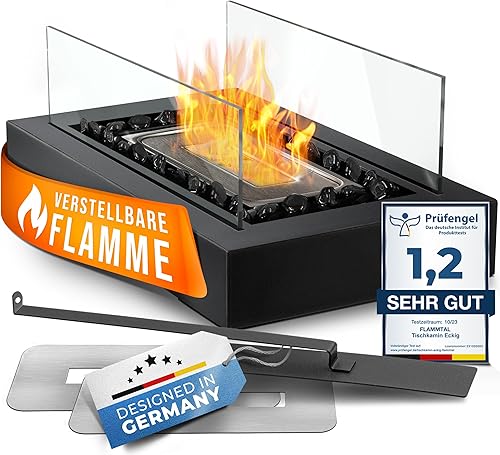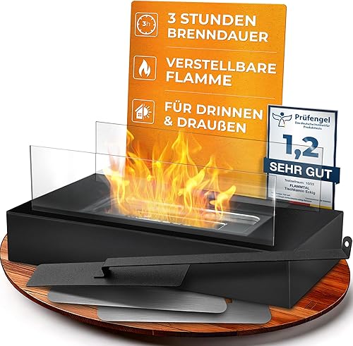 Der flammtal Bioethanol Tischkamin Square [Das Original] - Tischfeuer für Indoor & Outdoor [3h Brenndauer] - Verstellbare Flamme - Bio Ethanol Kamin mit Scheiben aus Sicherheitsglas [35x18x14,5cm]
