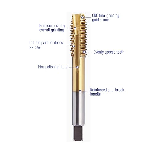FOCMKEAS 2 Stück Spiralspitze Gewindebohrer M4 x 0,7 Gewinde, Erdgewinde H2 3 Rillen, Hochgeschwindigkeitsstahl HSS 6542 metrischer Schraubfräsgewindebohrer, titanbeschichtet
