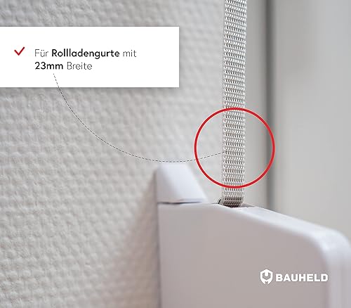 BAUHELD® Rolladen-Gurtwickler Aufputz [Einfädelautomatik] - Robuster Rollladen Aufwickler für Rolladengurt 14mm [ohne Gurt] - 180° Schwenkbar - Mini Rollo-Wickler mit Lochabstand 153mm - Weiß