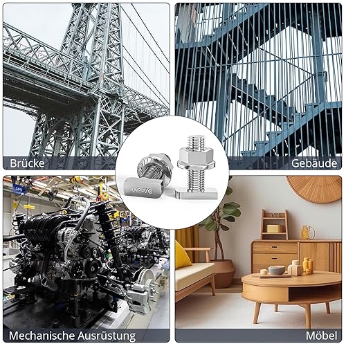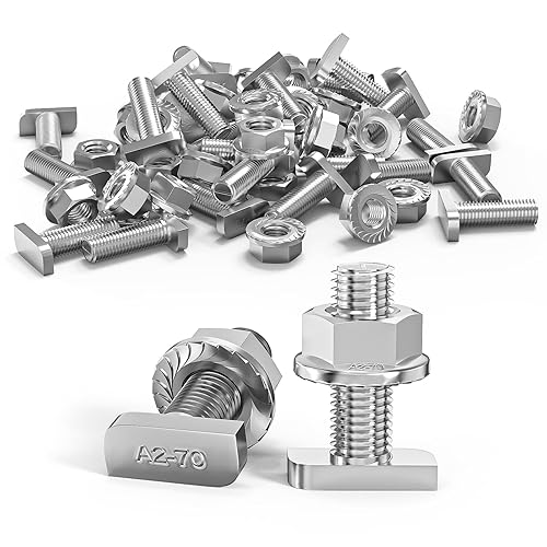 ORTAVA Hammerkopfschrauben M8x25, 24 Stück Hammerkopfschraube M8 Edelstahl A2-70 mit Flanschmuttern, Stockschrauben, Gewächshaus Schrauben für PV Solar Montageschienen, Photovoltaik