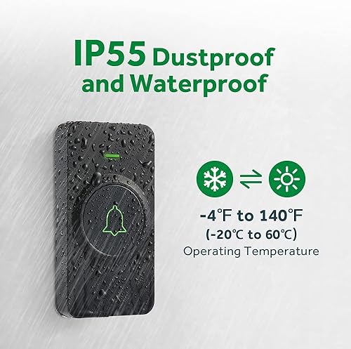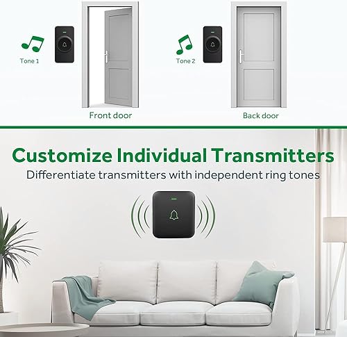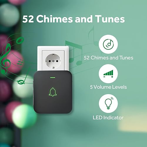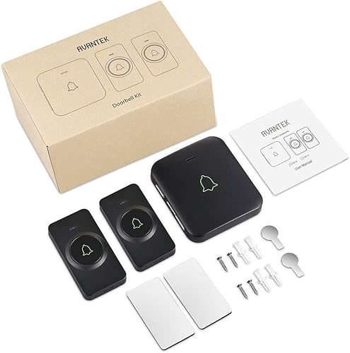 Funkklingel kabellose Türklingel, AVANTEK Türglocken 300M IP55 Wasserdicht Elektronische Funkklingel mit Plug-In-Empfänger und 2 Sender, 52 Melodien auf 5 Stufen Volumen, LED, Schwarz