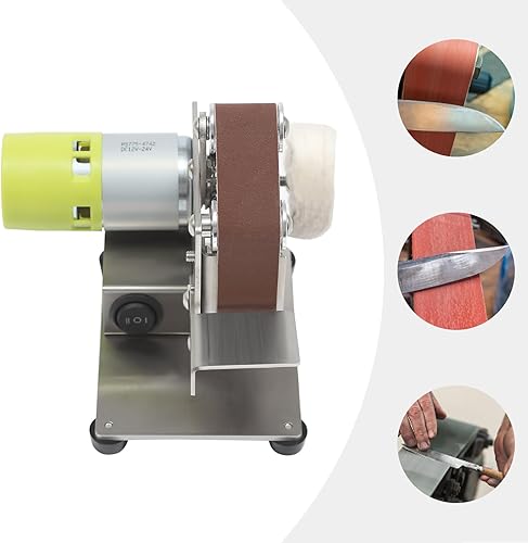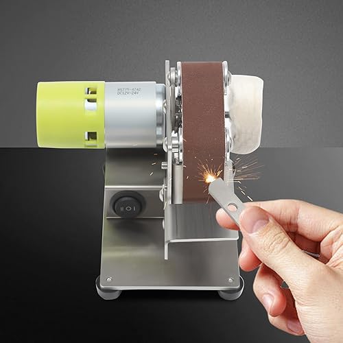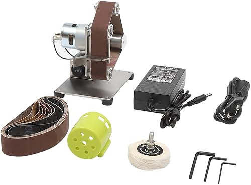 Mini Bandschleifer mit 10 Schleifbändern 150 W Elektrischer Bandschleifer DIY Poliermaschine 7 Gang Einstellbar Bandschleifmaschine Bench Belt Grinder Max.10000 RPM