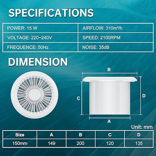 HG Power 150mm Abluftventilator 2 Richtungen Badlüfter mit Fernbedienung 3 Geschwindigkeiten Lüfter Leise mit Speicherfunktion für Bad Küche WC Garage Keller Auspuff und Einlass Belüftung