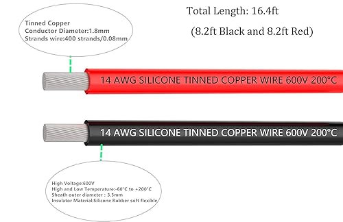 Makerfire 12 Gauge Silikondraht, 12 AWG Elektrokabel 5 m, 2,5 m schwarz und 2,5 m rot, flexibel, 680 Litzen, 0,08 mm verzinnter Kupfer-Hochtemperaturdraht für ferngesteuerte Autos, Marine, Drohnen usw