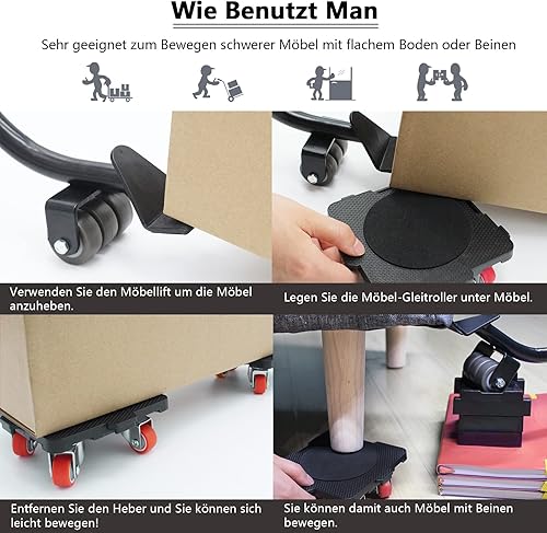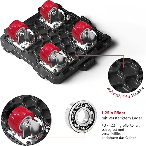 ONEON Möbel Transportroller Set, Stück Möbel Gleitsystem mit Lastenheber,Möbeltransport Set mit Möbelroller,360 Grad drehbar Rads,Umzugshelfer möbeltransportrollen (Rotes Rad)