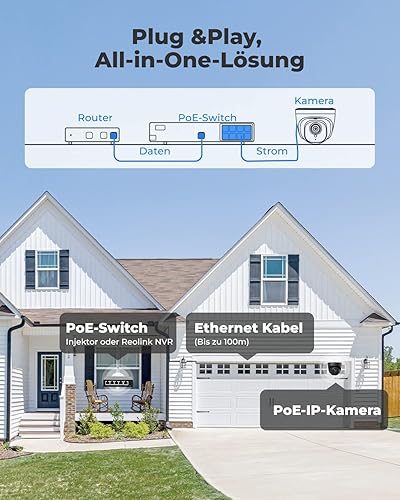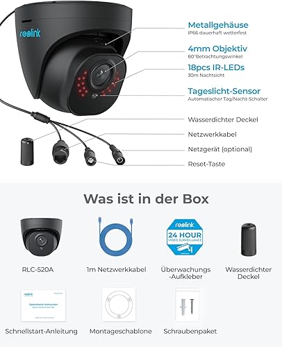 Reolink 5MP PoE IP Kamera Outdoor mit Personen-/Autoerkennung, Überwachungskamera Aussen mit Zeitraffer, IR Nachtsicht, Wasserfest, microSD Kartensteckplatz, RLC-520A